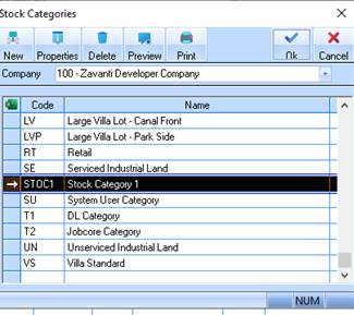 5. Press the OK button. The refreshed Stock Category Listing window will be displayed as follows: