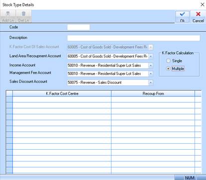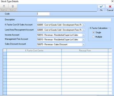 •These percentages are applied to the Cost of Sales Value (the cost of sale value is derived by applying the cost of sale percentage to the lot price (sale price) and a cost of sale for each row is calculated. This cost is then posted to the Cost Centre selected in the Cost of Sales Distribution column.
