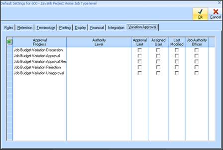 Please ensure that if any or all of your jobs are set to "Authority Level" you reset the new Job Costing defaults settings for the "Variation Approval" according to your requirements. |