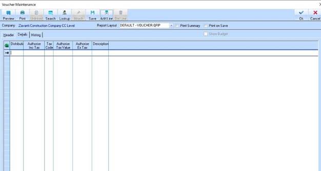 16. The Authorised field is used when the entry in the Details tab has been completed and an authorised amount assigned to the voucher.