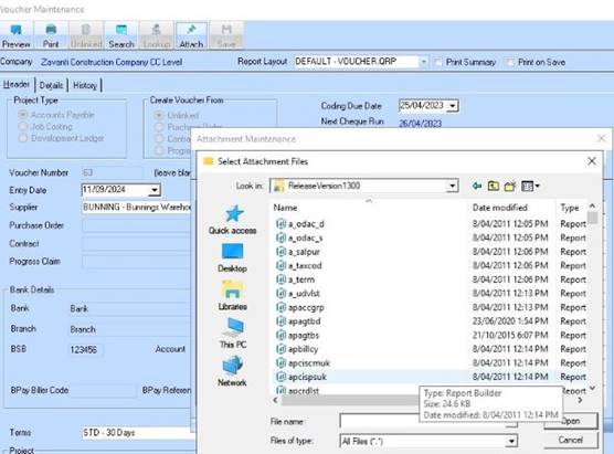 An enhancement has been made to the Voucher Maintenance functionality that now allows you to 'attach' any scanned document or electronic file. This will be particularly useful for Voucher users who wish to allow users to review the 'invoice' through the Voucher approval process without having to circulate the physical document. Users can now click on the 'attach' button on the Voucher maintenance detail window to attach, or view any document previously attached.