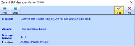 The message for cancelling or closing transactional windows within the software has been changed to be more informative to users. The message now reads "Unsaved data is about to be lost. Are you sure you wish to proceed?" where previously it read "Are you sure you wish to cancel the operation?"