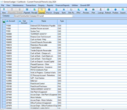 5. Note the 'Balance' figures in Blue on the top right side of the screen. The Balance must be zero. If it is not zero you will need to find the line items (DR’s and CR’s making up one journal entry) that do not balance. When you have determined which line you want to change, follow Step 2 Correcting a Line Item.