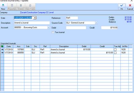 11. At this stage you can adjust the $ amount, or perhaps re-select the General Ledger Account to correct your journal line item.