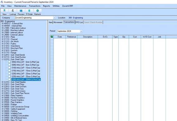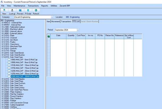 1. The below Inventory Item has no stock on Hand, Transactions or Fifo in the current period.