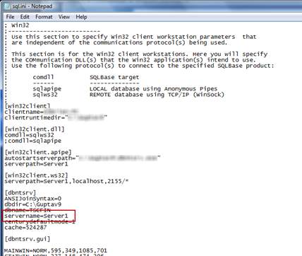 7. You can check the server name by looking at the SQL.ini file located in the “Gupta” folder. In default installations this would usually be C:\Gupta folder.
