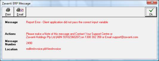 When producing reports, the software passes data to the reports in the form of “input variables”. When the software is trying to pass the information and the report isn’t set up to receive that input variable, the user will encounter the following error:
